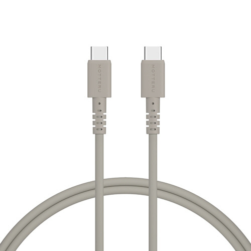●やわらかく絡まない急速充電データ転送対応USB-C to USB-Cケーブル、長さ1m、カラーはラテグレージュです。