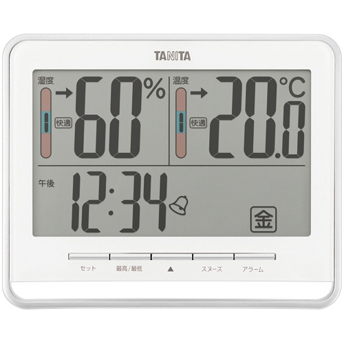 ●温湿度に時間、曜日もひと目でわかる。