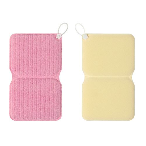 角が洗いやすい折り目付き、2つ折にしても使えます。