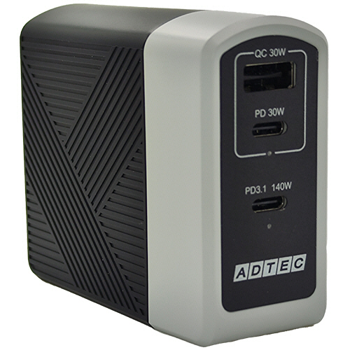 ●単独出力時140W(PD3.1)もしくは100W(PD3.0)の高速充電に対応したバッテリーチャージャー。本体色はブラックです。