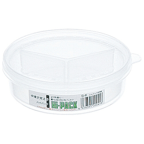 ●丸型・中子3個付の保存容器、容量420mLです。