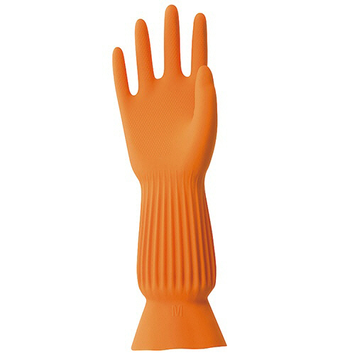 ●女性の手を考えた「ぴったり」機能の手袋。Sサイズ、カラーはオレンジです。