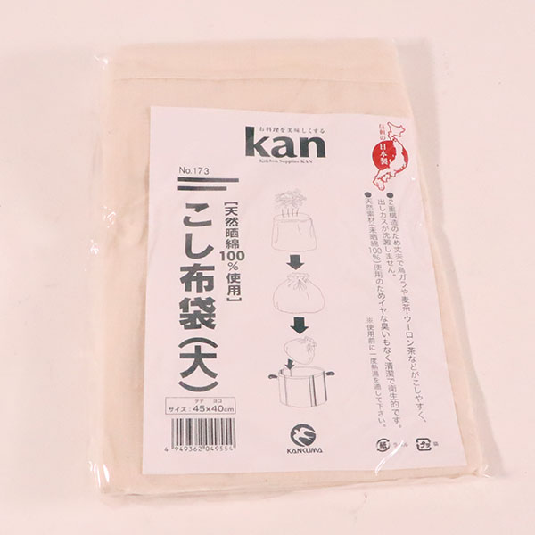 天然未晒綿100%のだしこし袋。サイズ:縦450×外寸横400mm材質:天然未晒綿100%450×400mm