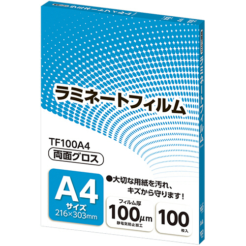 ラミネートフィルム A4サイズ グロスタイプ 100μm 1パック(100枚) 【東京23区ほか:約1週間遅延】