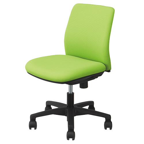●脚幅560mmでせまい机にも収まりやすい!小ぶりな幅1000mmのデスク内にもワゴン(幅400mm)+チェアがピッタリ収まる省スペースタイプのグリーン色のチェア。