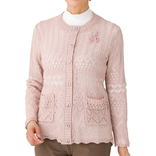 ニットワンタッチテープ丸首カーディ ローズ LL 1着 【5-8営業日遅延】