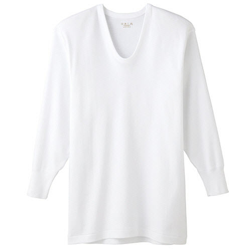 ●良質綿で汗をよく吸う、やわらかく肌ざわりの良いフライス素材の紳士用長袖U首のホワイト・3Lサイズです。