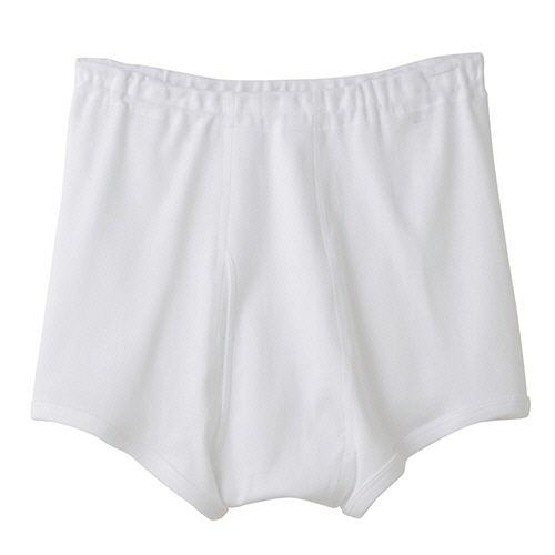 ●良質綿で汗をよく吸う。やわらかく肌ざわりの良いフライス素材の前あきトランクス。ホワイトのLサイズです。
