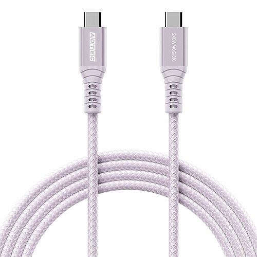 ●高速充電の規格「USB Power Delivery EPR」に対応するUSB Type-Cケーブル。色はパープルです。