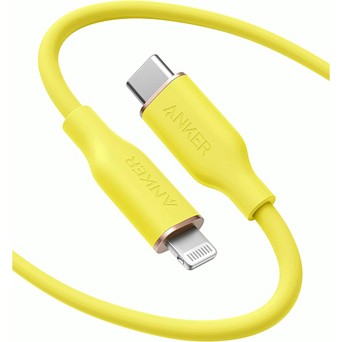 ●ケーブル内部の銅線をグラフェンで覆い、外装にシリコン素材を使用した3層構造を採用し、やわらかさを実現したレモンイエローのUSB-C-ライトニングケーブル。長さは約1.8mです。