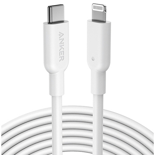 ●USB Power Delivery対応のUSB-C急速充電器と一緒に使用することで、iPhoneへフルスピード充電が可能。ホワイトのUSB-C-ライトニングケーブル。長さは3.0mです。