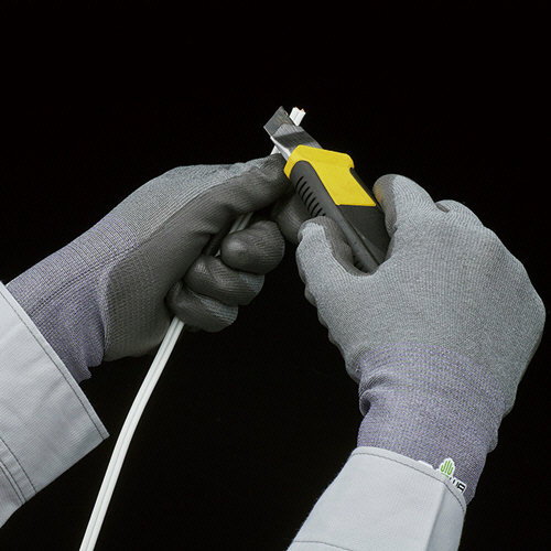 指先までしっかりフィットし、作業性に優れたポリウレタンコートの耐切創手袋(耐切創レベル:X/D)