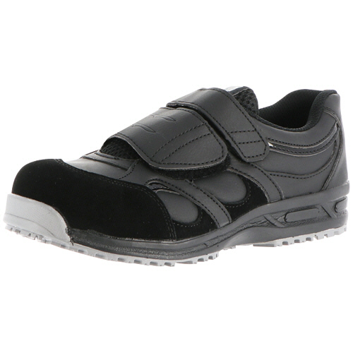 鋼製先芯と耐踏抜材で足を防護するワークシューズ。