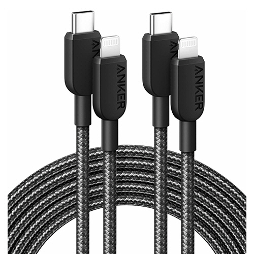 ●USB PD対応のUSB-C急速充電器(別売)と一緒に使用することで、iPhone 14 Proを30分で50%まで充電可能なUSB-C-ライトニングケーブル。長さ約3mのブラック、2本セットです。