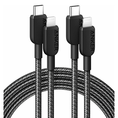 ●USB PD対応のUSB-C急速充電器(別売)と一緒に使用することで、iPhone 14 Proを30分で50%まで充電可能なUSB-C-ライトニングケーブル。長さ約1.8mのブラック、2本セットです。