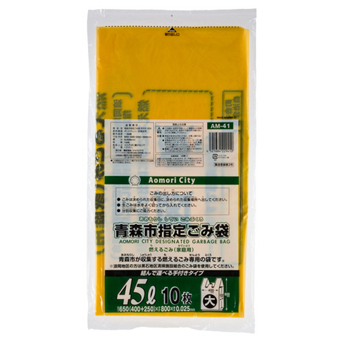青森市 可燃用ごみ袋 手付き 黄色半透明 45L(大) 1パック(10枚) 【5-8営業日遅延】