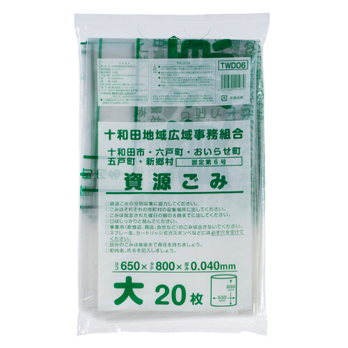 十和田地域 指定資源ごみ袋 透明 大 1パック(20枚) 【5-8営業日遅延】