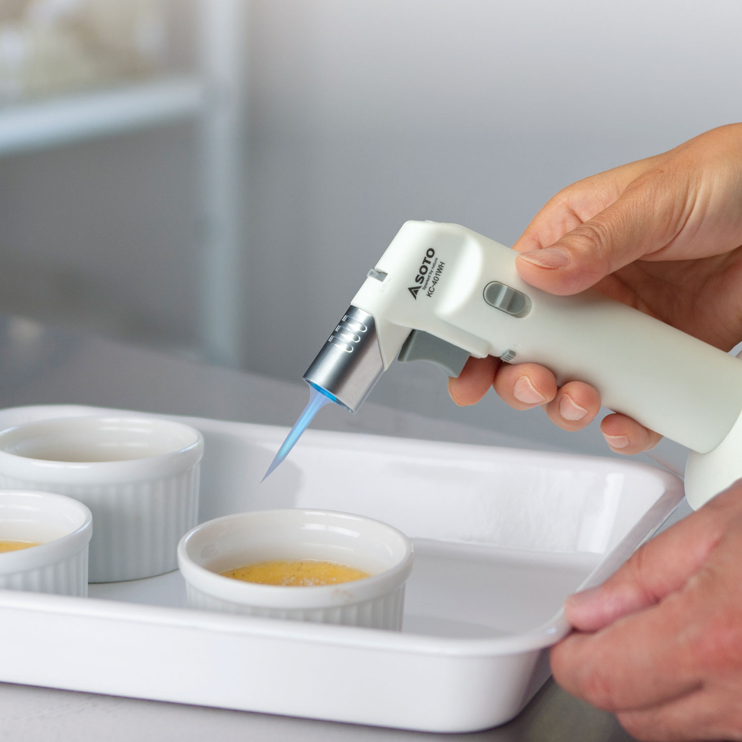 お菓子づくり、デコレーションなど幅広く使えます。3分以上の連続使用はしないで下さい。やけど、器具の破損の原因となります。[製品仕様]外形寸法:長さ90×幅70×高さ146mm/火口径:φ12mm/ガス充填量:約7g/火炎温度:800℃~1300℃/着火方式:圧電点火方式/ガス充填式:カセットガスから充填。※ボンベは別売り。