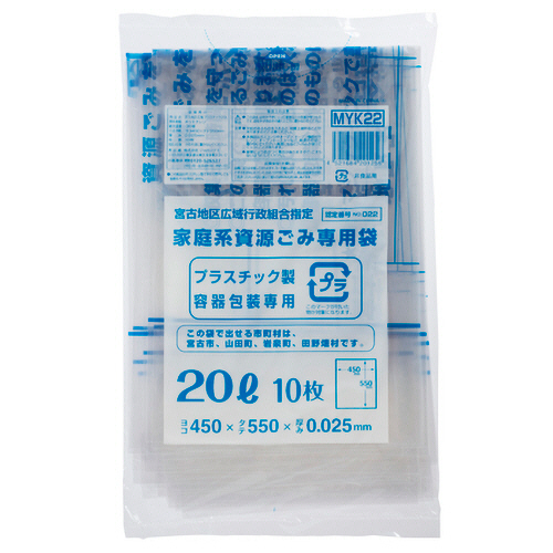 ●宮古地区広域指定のプラスチック製容器包装専用ごみ袋、20Lの10枚入です。
