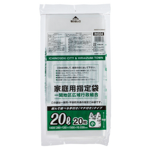 ●一関地区家庭用指定、手付きのごみ袋、20L(小)の20枚入です。