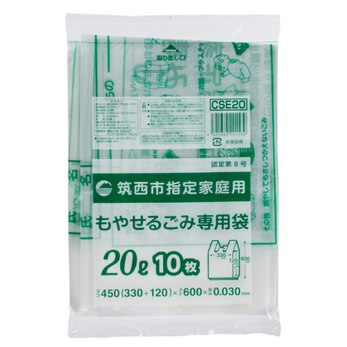 筑西市 指定ごみ袋 可燃 手付き 半透明 20L 1パック(10枚) 【5-8営業日遅延】