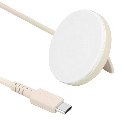 ●ワイヤレス充電が簡単にできるQi2対応充電器です。磁石の力で端末の充電位置に近づけるだけで、ピタッと装着できるので、いつも正確な位置で固定でき急速充電が可能。色はアーモンドミルクです。