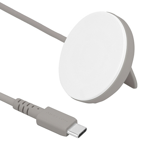 ●ワイヤレス充電が簡単にできるQi2対応充電器です。磁石の力で端末の充電位置に近づけるだけで、ピタッと装着できるので、いつも正確な位置で固定でき急速充電が可能。色はラテグレージュです。