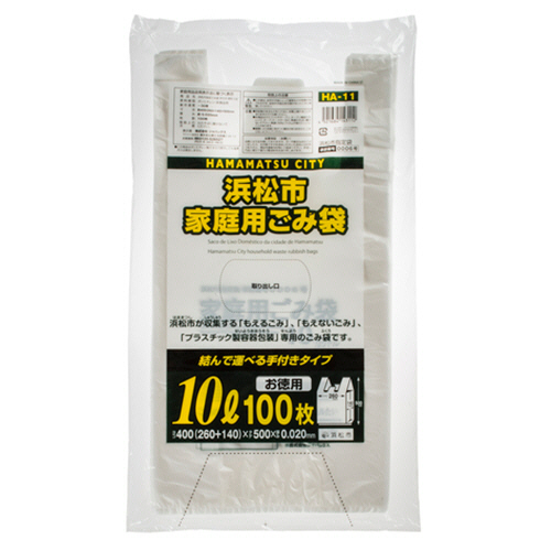 浜松市 指定ごみ袋 家庭用 手付き 半透明 10L 1パック(100枚) 【5-8営業日遅延】