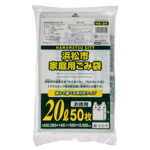 浜松市 指定ごみ袋 家庭用 手付き 半透明 20L 1パック(50枚) 【5-8営業日遅延】