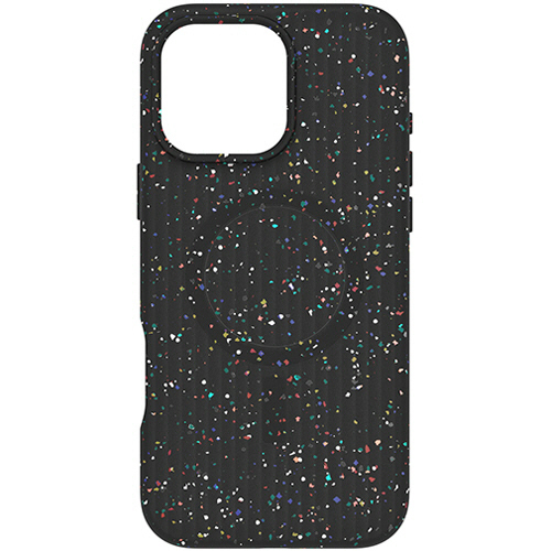 再研磨シリコンの斑点がユニークなリサイクルスタイルを特徴とした、スリムでソフトな手触りのMagSafe対応ケース。