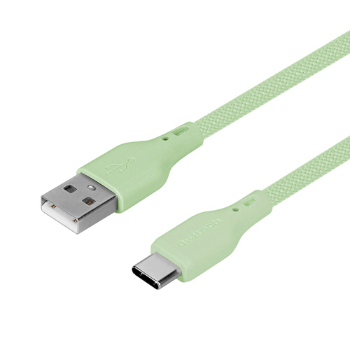 ●ニュアンスカラーがガジェット周辺のアクセントに。USB Type-A to USB Type-Cケーブル、セージグリーンの長さ1.5mです。