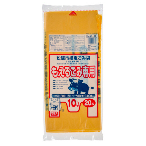 ●松阪市指定、手付きの可燃用ごみ袋、S(10L)の20枚入です。