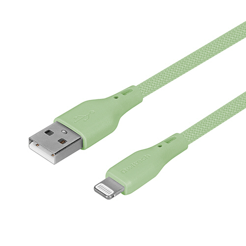 ●ソフトなシリコン素材を採用しているため、やわらかく絡まりにくいストレスフリーなUSB Type-A to Lightningシリコンケーブルです。色はセージグリーン・長さ1.5mです。