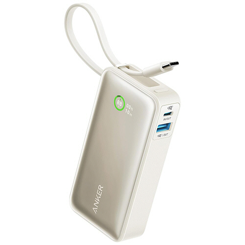 ●外出時の荷物がスッキリ!最大30Wの高出力かつ大容量。カラーはホワイトです。