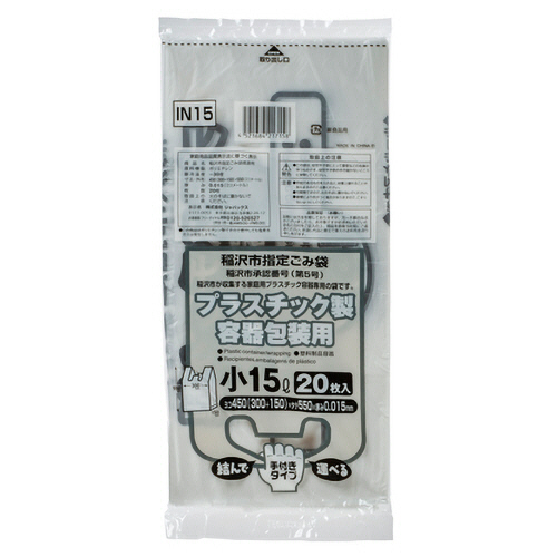 ●稲沢市指定、プラスチック製容器包装用の手付きごみ袋、15L(小)の20枚入です。