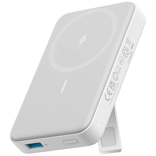 ●家の中ではスタンドを利用してマグネット式ワイヤレス充電器として、外出先ではスタンドを折りたたみマグネット式ワイヤレス充電対応のモバイルバッテリーとして2通りでの利用が可能。ご自宅でも外出先でもマグネット式ワイヤレス充電を利用できます。カラーはホワイトです。