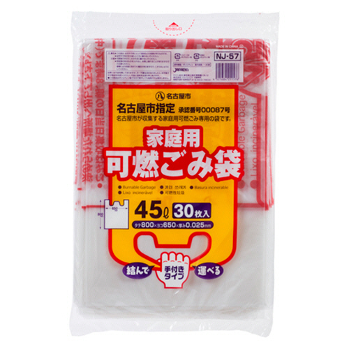 名古屋市 指定ごみ袋 家庭用 可燃 手付き 半透明 45L 1パック(30枚) 【5-8営業日遅延】