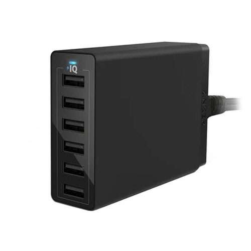 ●6ポート搭載で軽量かつコンパクトなデザインを実現。本体色はブラックです。●Anker独自技術であるPowerIQテクノロジーにより、接続された機器を自動的に検知し、フルスピード充電を可能にします。