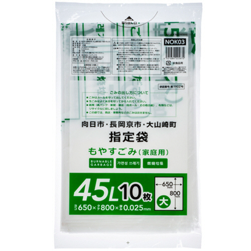 長岡京市 指定ごみ袋 可燃 半透明 45L(大) 1パック(10枚) 【5-8営業日遅延】