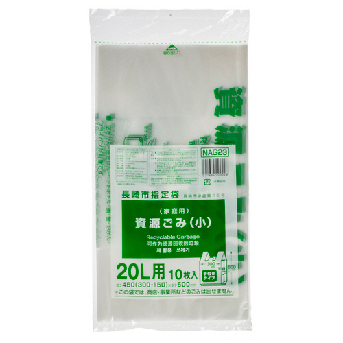 ●長崎市指定、資源用の手付きごみ袋、20L(小)の10枚入です。