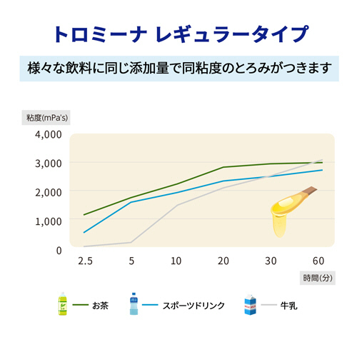 ●粘度変化が少なく、まとまりのある安定したとろみになります。