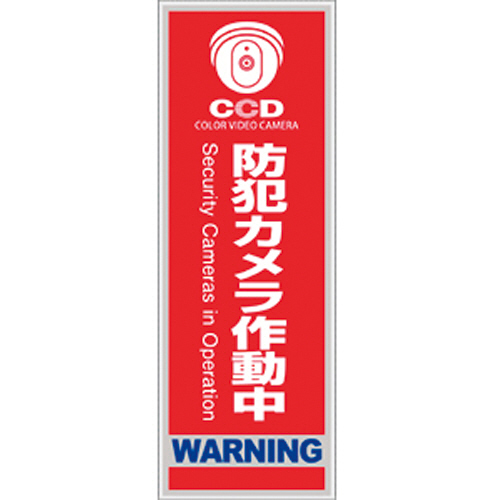 防犯プレート 「防犯カメラ作動中」 赤色 縦型 Sサイズ 1枚 【5-8営業日遅延】