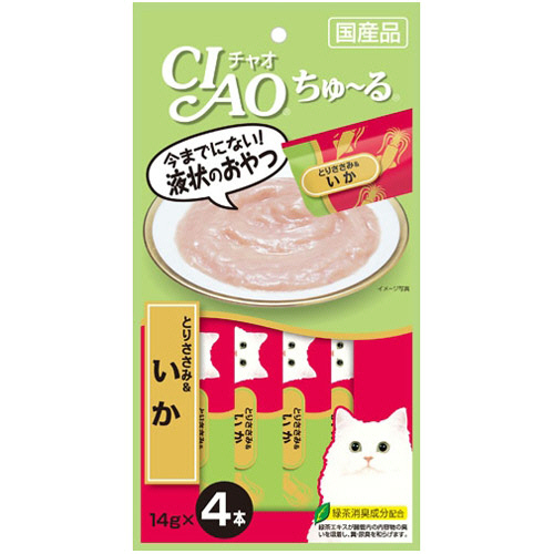●原材料名/鶏肉(ささみ)、いか、いかエキス、タンパク加水分解物、糖類(オリゴ糖等)、植物性油脂、増粘剤(加工でん粉)、ミネラル類、増粘多糖類、調味料(アミノ酸等)、ビタミンE、紅麹色素、緑茶エキス
