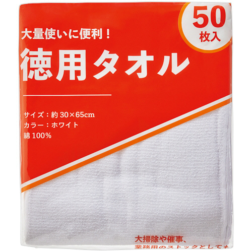徳用タオル ホワイト 1パック(50枚) 【5-8営業日遅延】