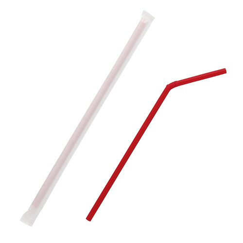 HEIKO フレキシブルストロー 6mm×21cm 単袋 赤 1セット(6000本:200本×30パック)