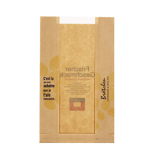●正面の一部分が透明フィルムのみになっているため、内容物を見せて包装できます。