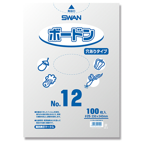 ●生鮮野菜、果物を扱う青果店やスーパーなどの販売店、農家、市場におすすめのボードン袋。やや厚みのある12号サイズの穴ありタイプ。100枚×10パックセットです。