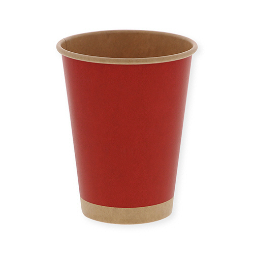 ●アイス・ホット兼用・12オンスの紙コップです。クラフト地にシックなレッドカラー。満杯容量:約440ml、50個×20パックセットです。