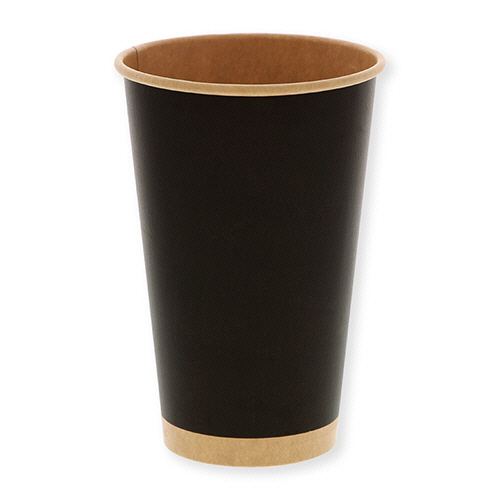 ●アイス・ホット兼用・16オンスの紙コップです。クラフト地にオールマイティなブラックカラー。満杯容量:約510ml、25個×40パックセットです。