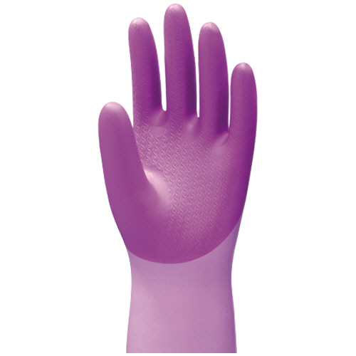 ●洗剤・油汚れから手肌をガード。パープルのビニール手袋、Mサイズです。